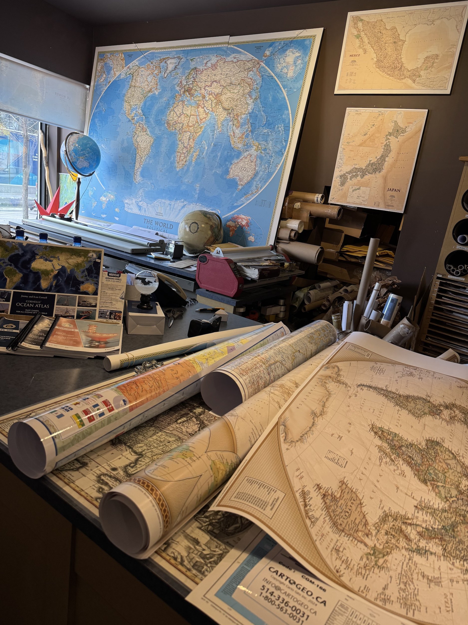 Next time you’re in Montreal, make your way to the shop on the northwest corner of Rue Ontario and Rue Berri. Choose some maps. Spread them out on the big counter in the back room. Take your time… and take in the world.